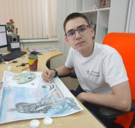 Кадет 1 курса ФЁДОРОВ КИРИЛЛ так увлекся жанром военного плаката, что даже решил участвовать в XI Всероссийском конкурсе военного плаката «Родная Армия». Тема его работы: «Это наша Победа! И ее никому не отнять!». Автор так рассказывает о своей работе: «Я нарисовал агитационный плакат. Дал название «Вечная память павшим! Вечная слава живым!» На мой взгляд, в наши дни очень важно иметь активную гражданскую позицию. Призывать и воспитывать патриотические качества у подрастающего поколения, ориентированных на примеры мужества и героизма воинов Великой Отечественной войны и Российской Армии».